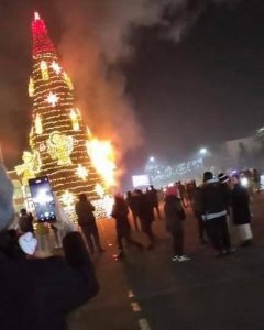დაიწვა გორის მთავარი საახალწლო ნაძვის ხე;