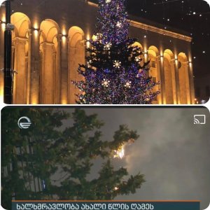 ცეცხლი გაუჩნდა თბილისის საახალწლო ნაძვის ხესაც, რომელიც მალევე ჩააქვრეს;